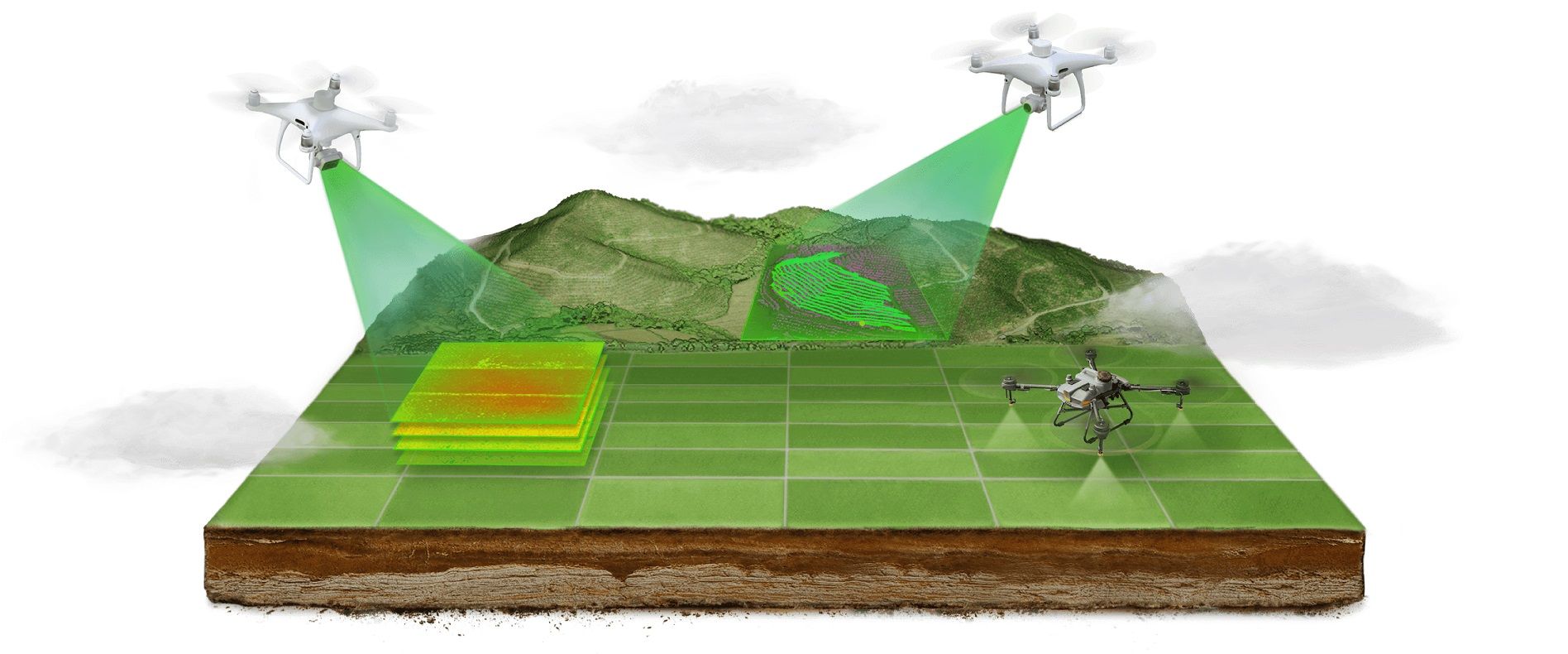 Parring af dette system med DJI P4 Multispectral giver brugerne mulighed for at anvende løsninger baseret på specifikke variabler i henhold til et automatisk genereret landbrugsjordreceptkort.