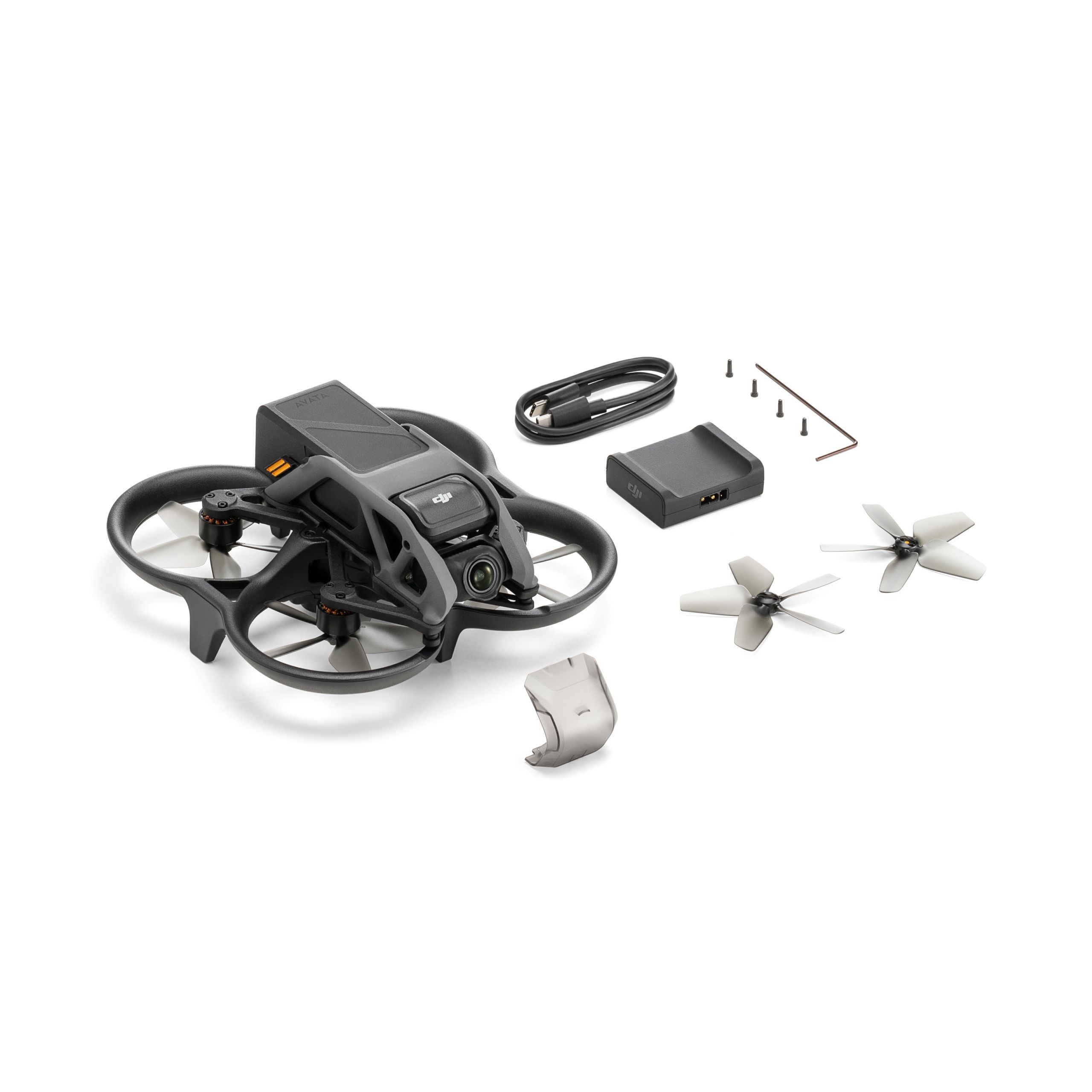 DJI Avata (Kun dronen) er til dig der allerede har FPV briller og fjernkontrol, enten FPV Fjernkontrol 2 eller Motion Controller. Du får følgende med i æsken: