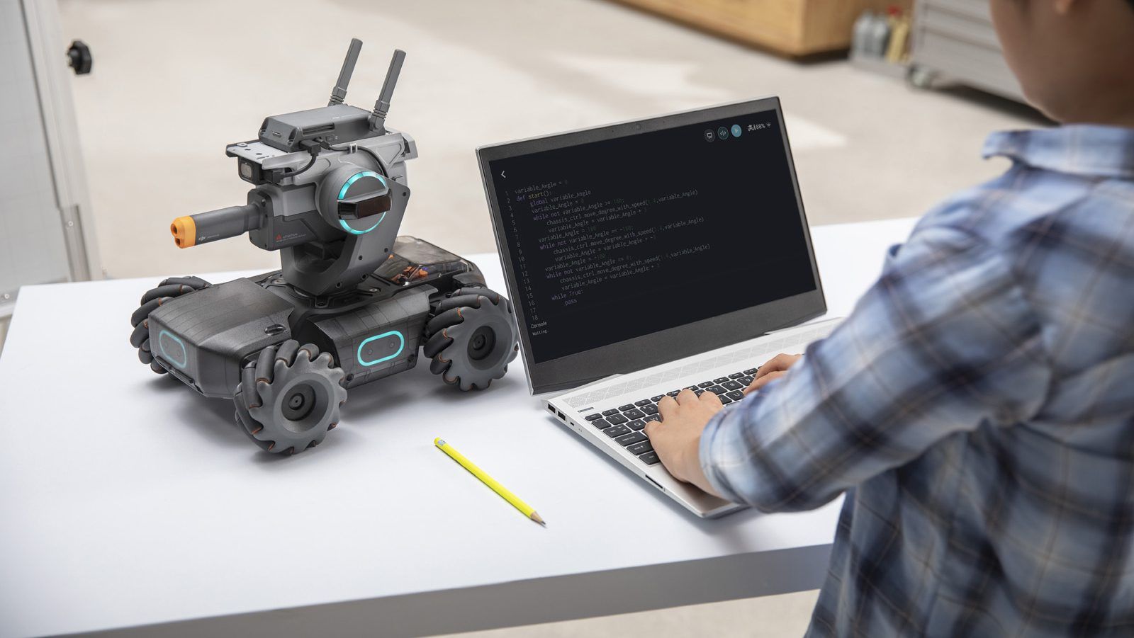 RoboMaster S1 en programmerbar kørende robot som har et hav af automatiske funktioner, samt en kanon til at skyde.