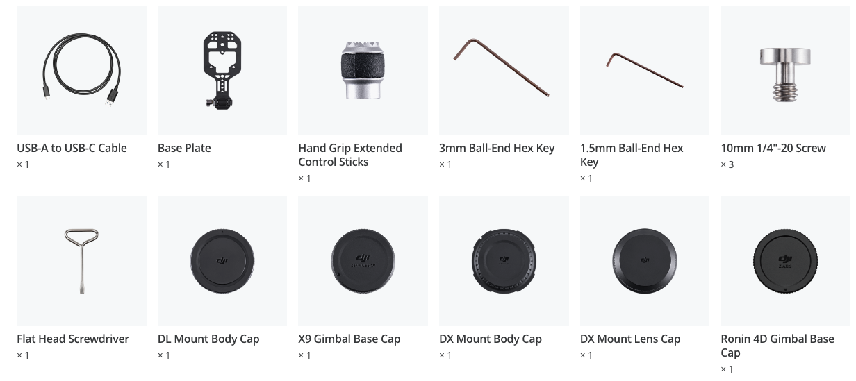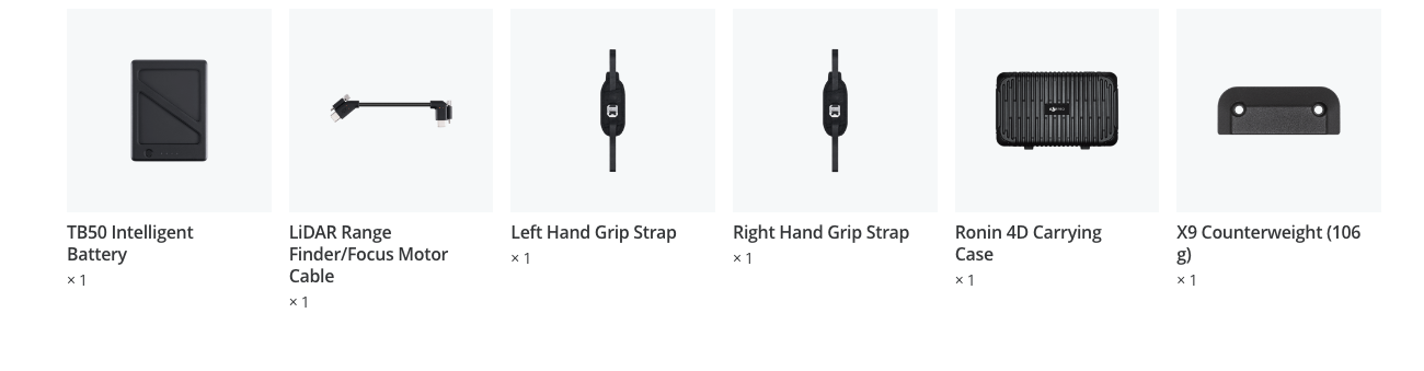 2. Measured with a fully charged TB50 Battery and Ronin 4D in a still state with the gimbal balanced, the Z-Axis inactive, and continuously recording in RAW. Gimbal movements or use of the Z-Axis will reduce operating time.