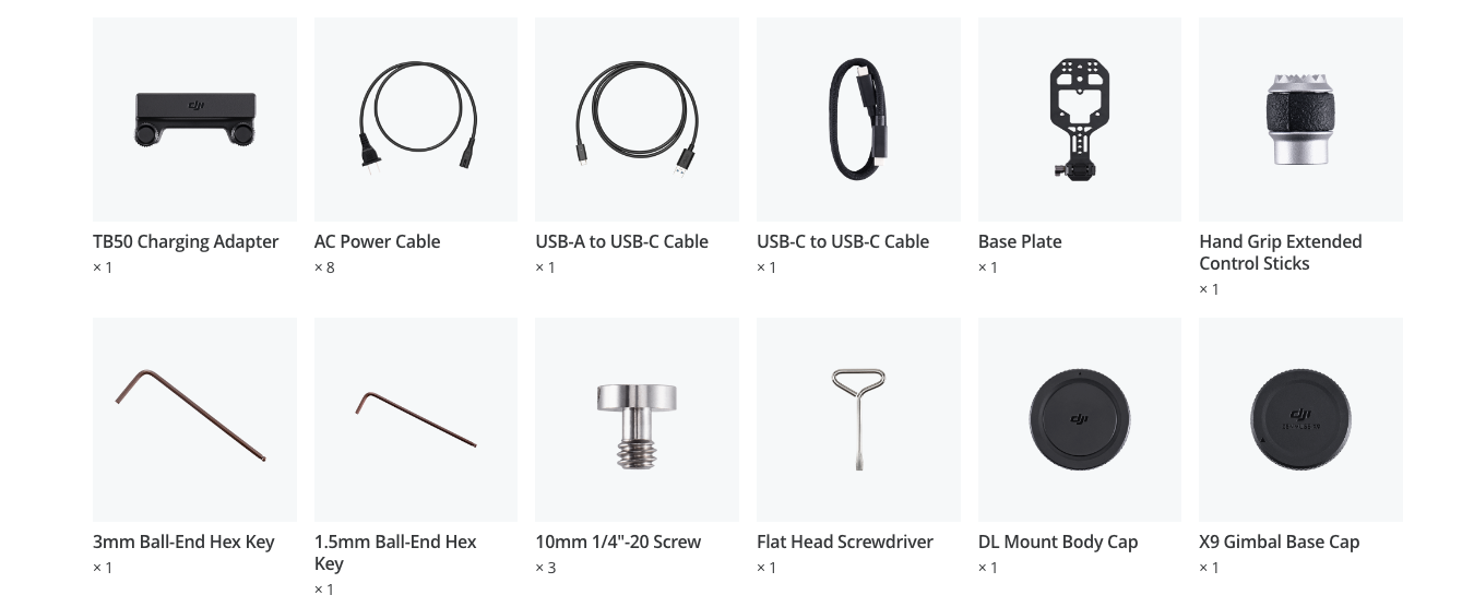 X9's standard DL-fatning understøtter tre kompakte fuldformede prime-objektiver. Husene er fremstillet af lette, monocoque kulfiber, så hver linse vejer kun 180 g. Flere DJI -objektiver vil være tilgængelige i fremtiden.