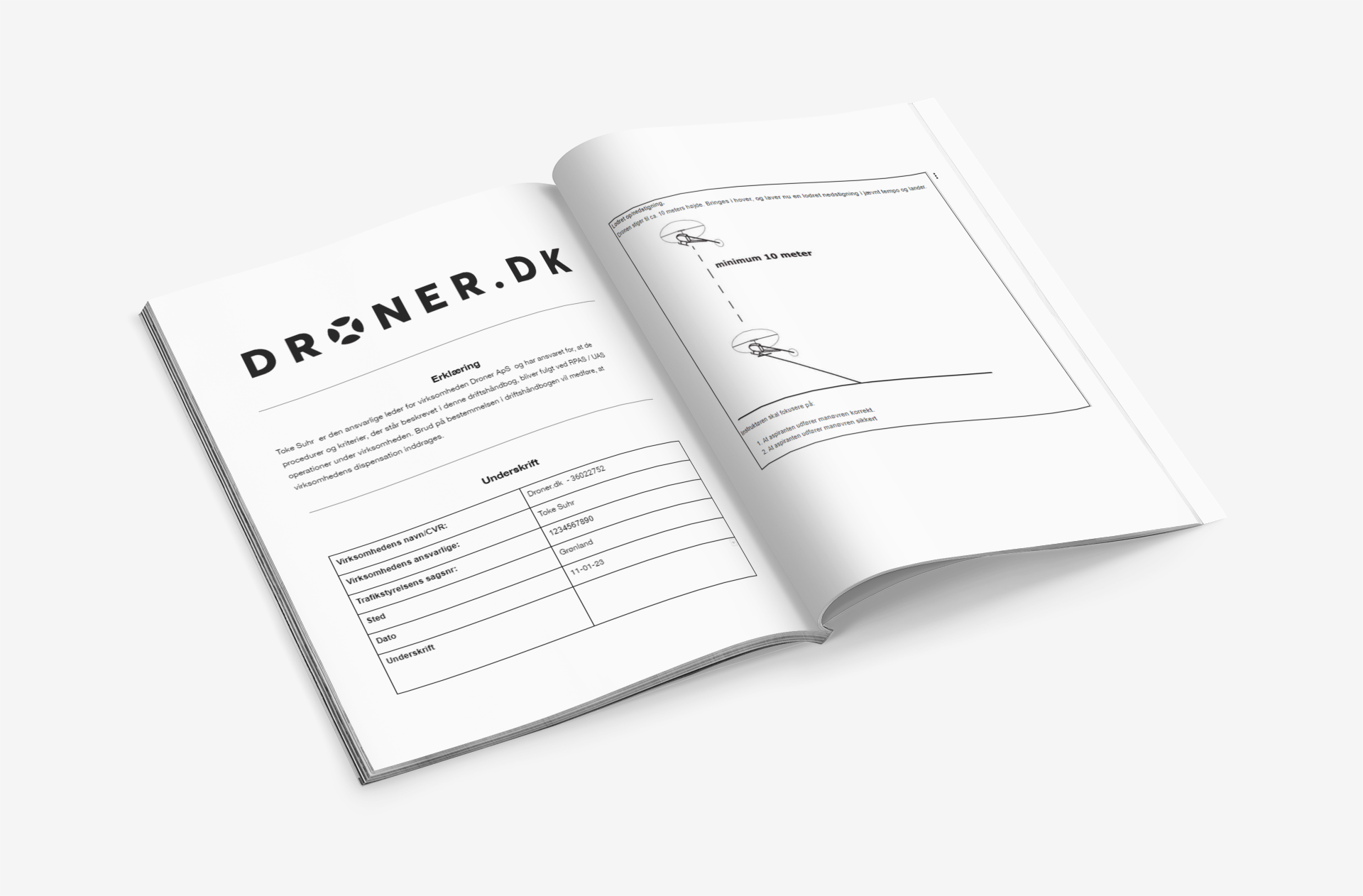 Droner.dk drives af Droner ApS, hvis kurser er godkendt af Trafik-, Bygge- og Boligstyrelsen til undervisning i diverse dronerelaterede kurser.